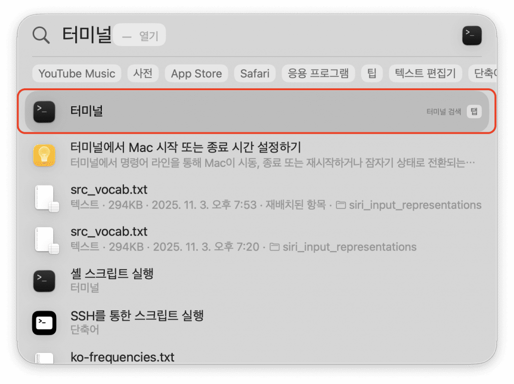 터미널 실행 방법을 모르신다면 위에서 말씀드렸던 터미널 실행 방법을 참고해주세요!