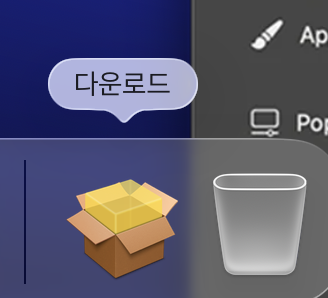 Finder- 다운로드에 설치된 파일을 확인해주세요. 또는 맥북 바텀바->다운로드로 가셔서 설치된 파일을 확인해주세요.