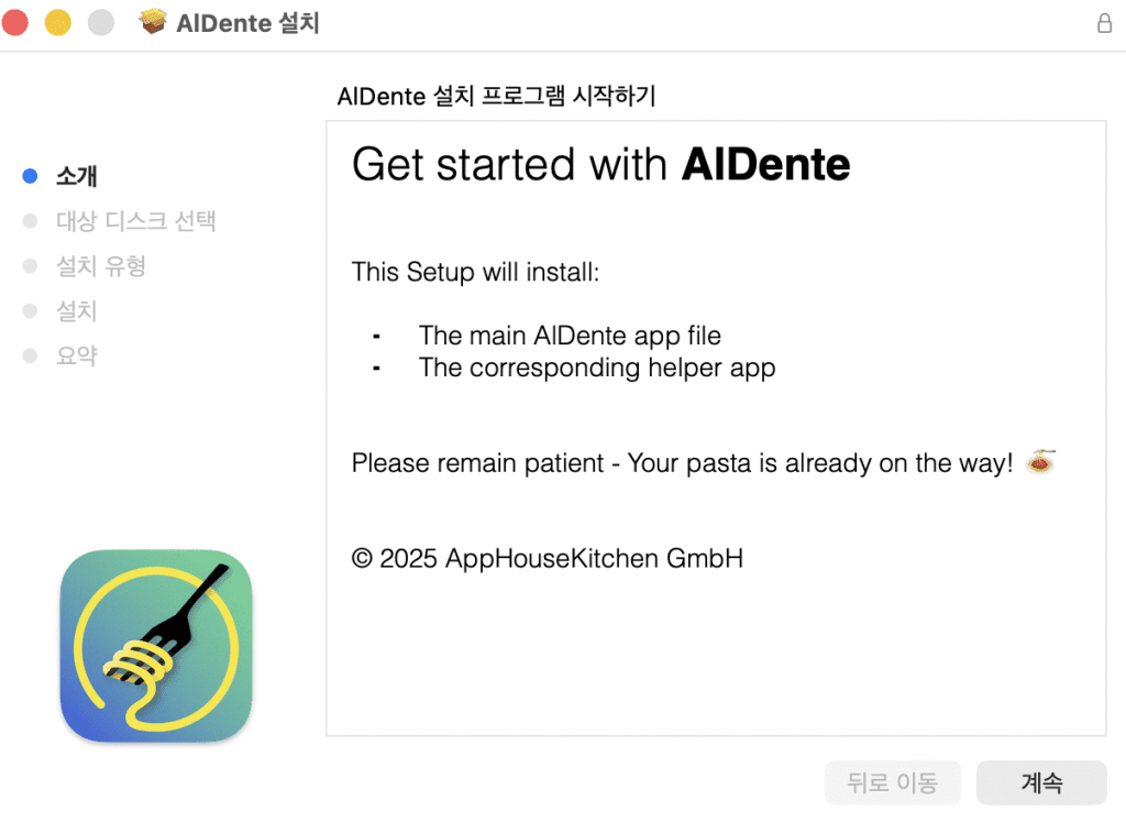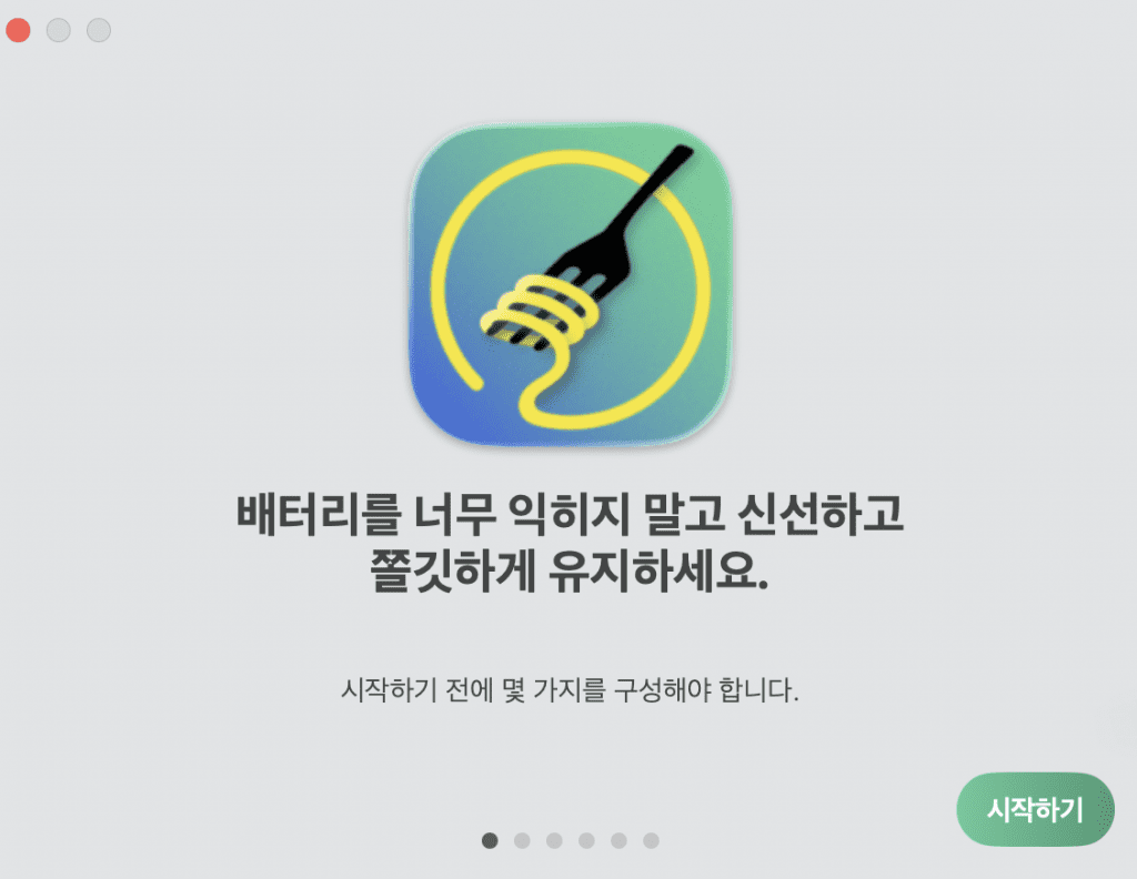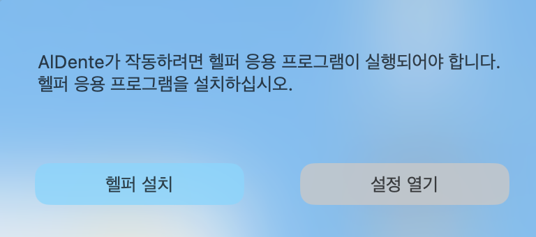 Aldente를 첫 실행하면 아래와같은 초기 설정화면이 시작됩니다.