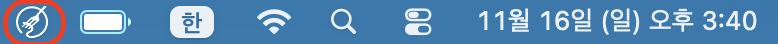 맥북 바탕화면에서 오른쪽 상단 위와같은 아이콘이 보이시면 정상적으로 설치되신거에요!