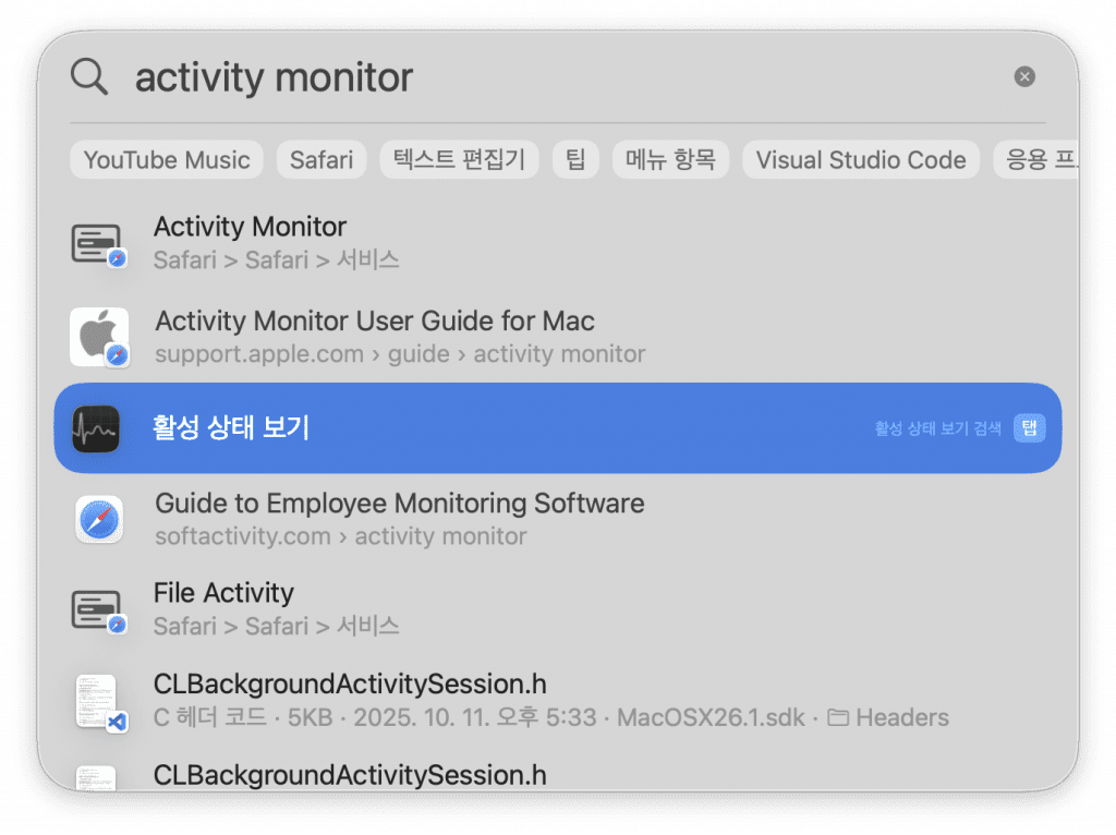 여기서 “activity monitor” 또는 “활성 상태 보기”라고 검색해주세요.