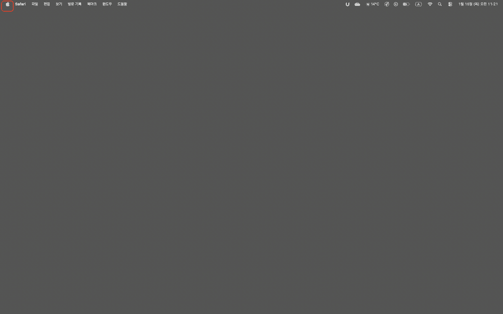 1-1. 맥북 화면 왼쪽 상단에 위치한 애플 로고를 클릭해주세요.